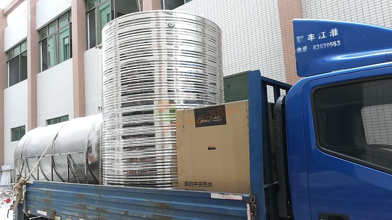 RSJ-200/MS-540V1(5P)美的空氣能熱泵主機(jī)1臺(tái)、5噸圓形立式不銹鋼保溫水箱1個(gè)臺(tái)及相關(guān)配套設(shè)施