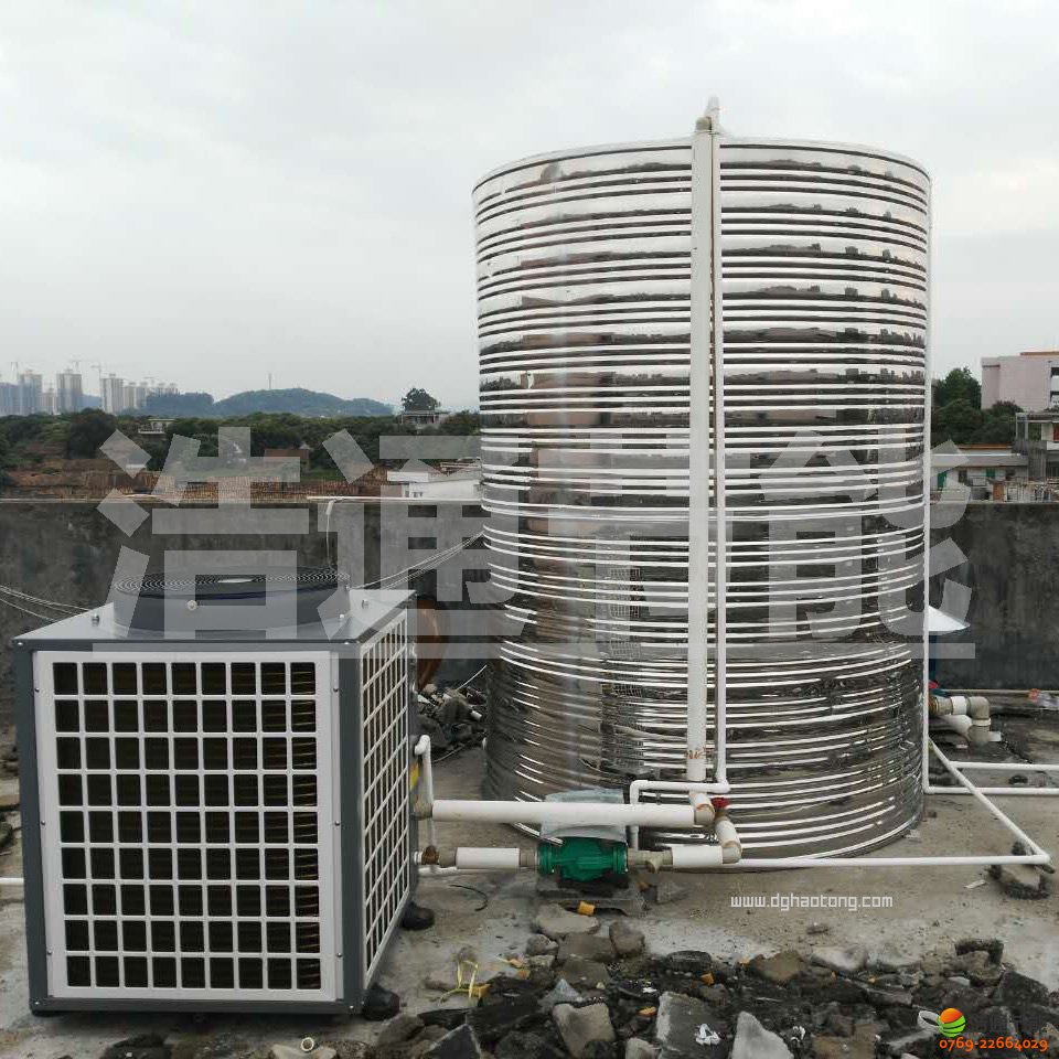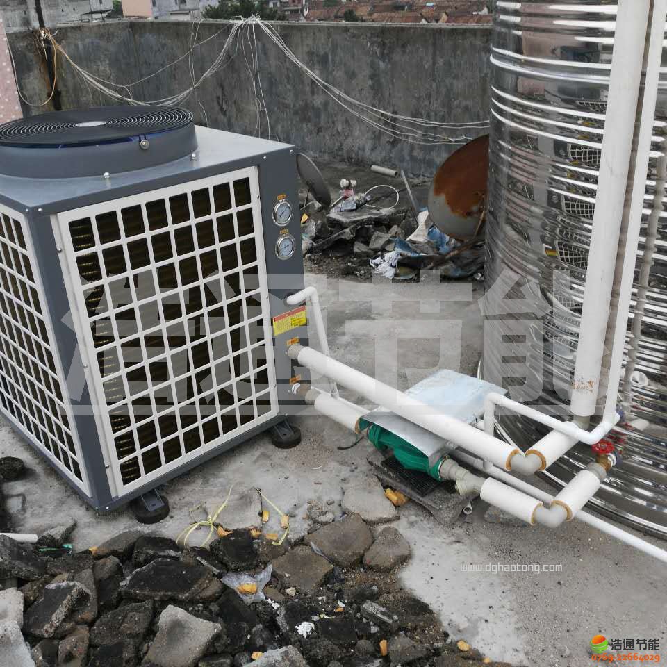 東莞常平朗貝村日供5噸熱泵熱水工程現(xiàn)場安裝圖