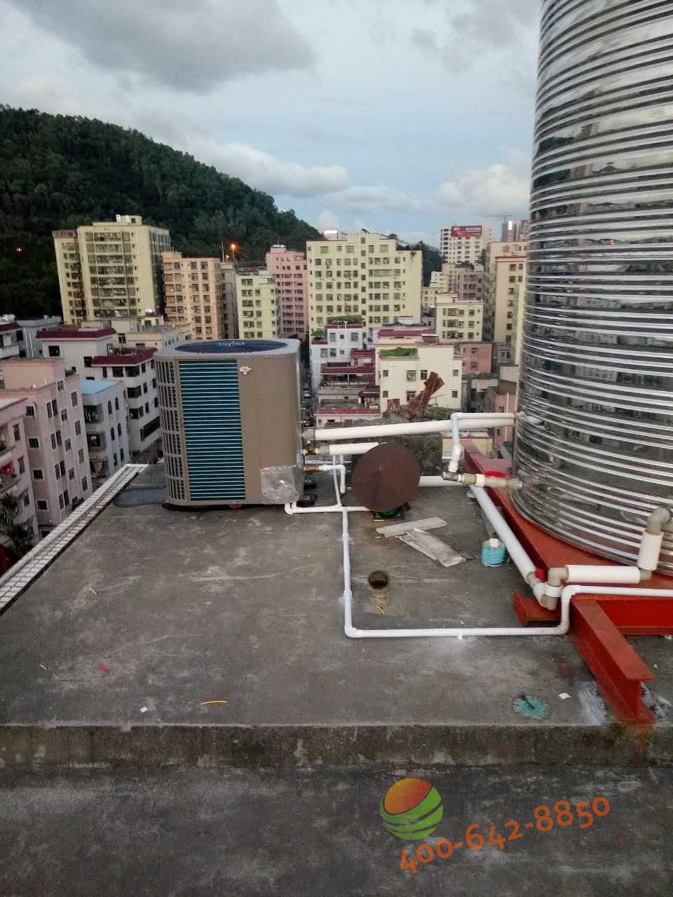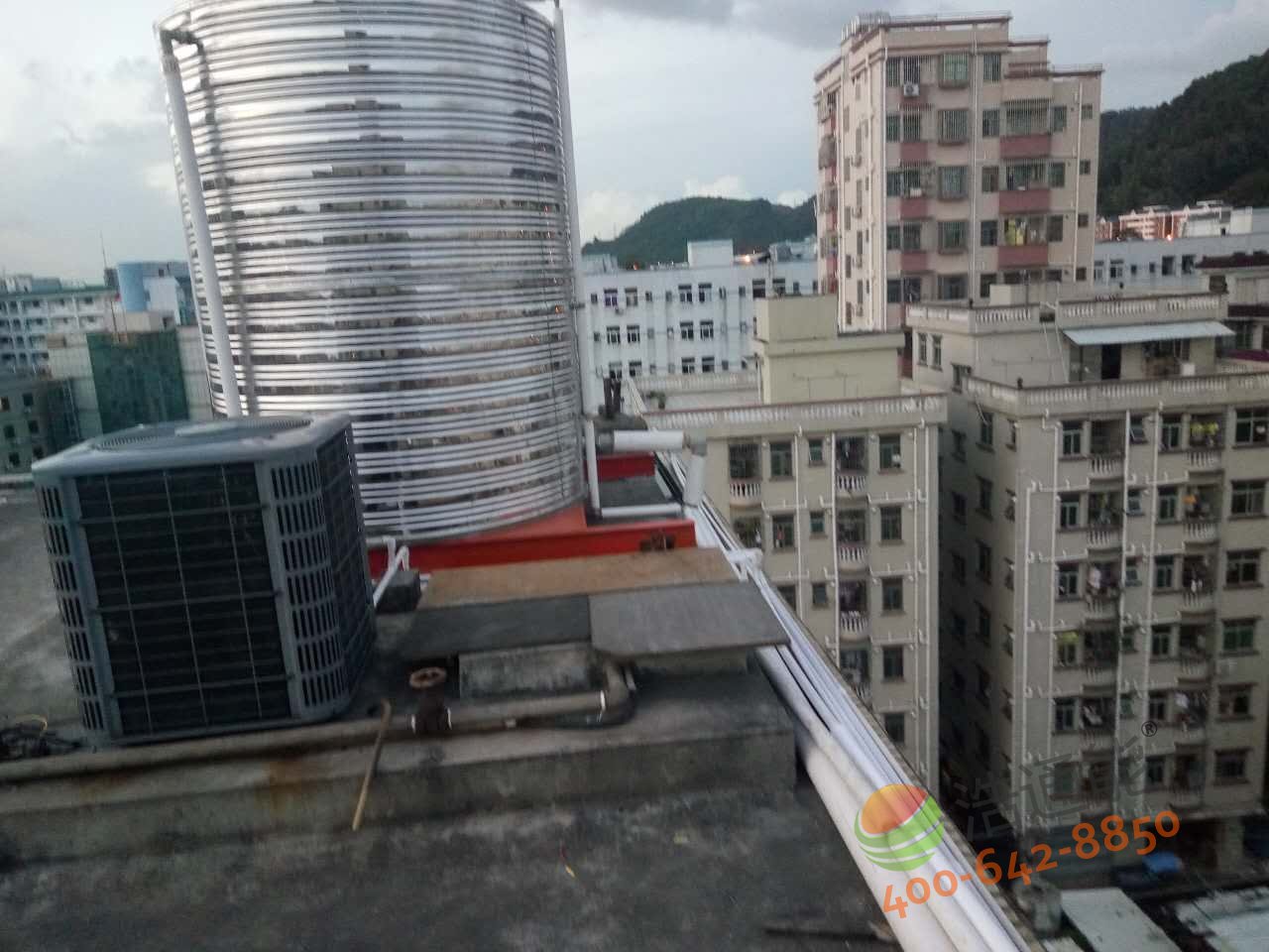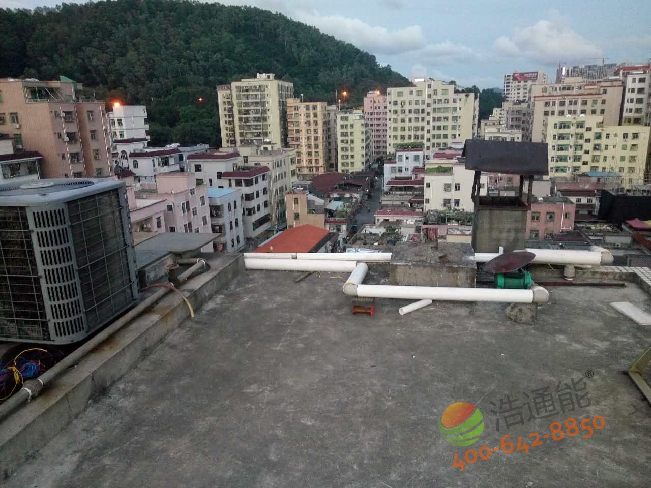 深圳寶安福惠商務賓館-美的5P5噸空氣能熱水工程——主機安裝效果圖