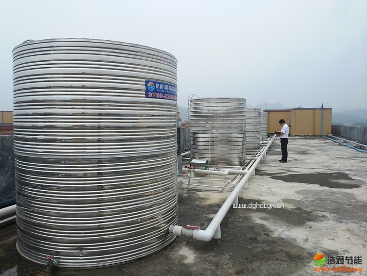 湖南永州寧遠(yuǎn)華榮鞋業(yè)有限公司第一期1100人56噸空氣能熱水工程項(xiàng)目水箱安裝效果