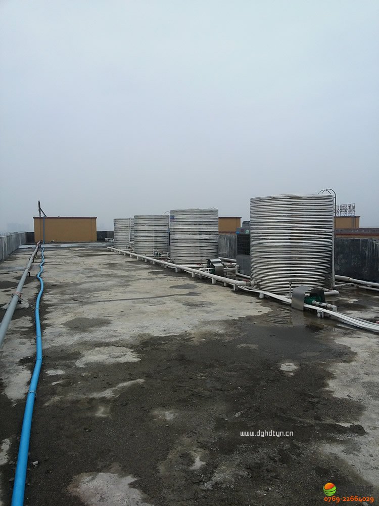 湖南永州寧遠(yuǎn)華榮鞋業(yè)有限公司第一期1100人56噸空氣能熱水工程項(xiàng)目單水箱安裝效果圖