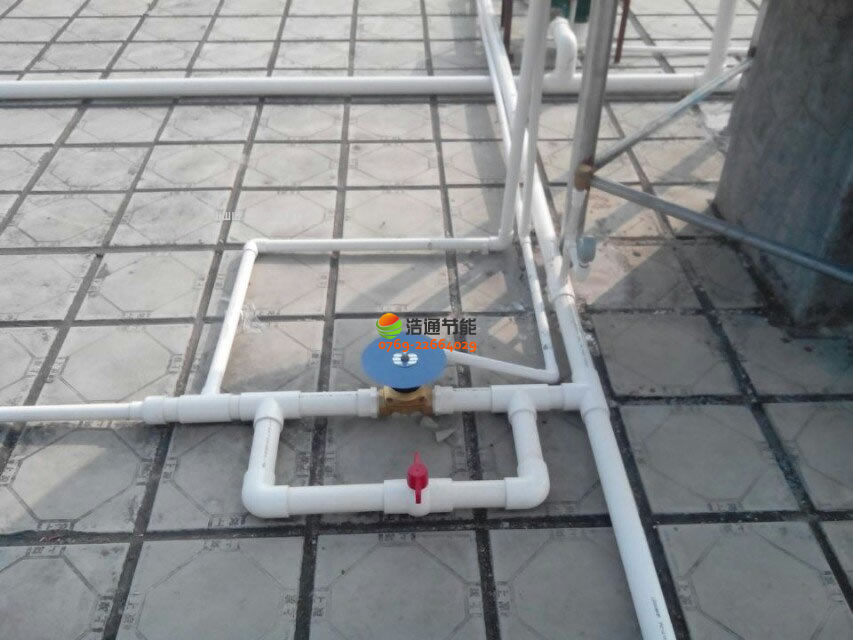 汕頭衛生學校新校區2000人美的空氣能熱泵熱水工程項目水管安裝情況