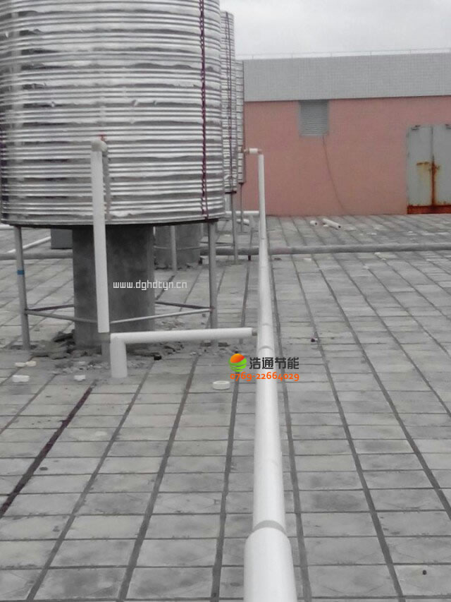 汕頭衛生學校新校區2000人美的空氣能熱泵熱水工程項目水箱安裝于立柱上