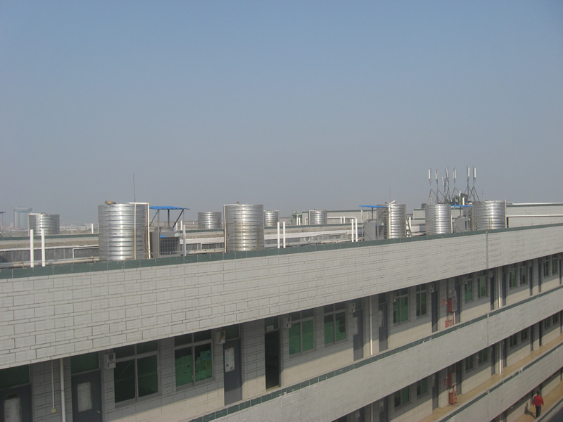 東莞綠揚鞋業有限公司10000人員工宿舍400噸水太陽能+空氣能熱泵熱水工程項目水箱安裝效果